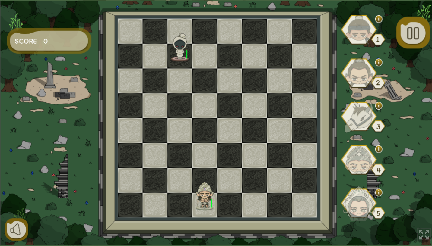 Chaturanga, a game that has movements based on general chess, but the rules of the game have been changed. At the beginning of the game there is a King which must be protected by other pieces from attacks by shamans. Let's attack the herd of shamans and achieve the highest score!